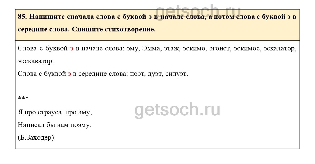 85. Напишите сначала слова с буквой э в начале слова, а потом слова с буквой э в
