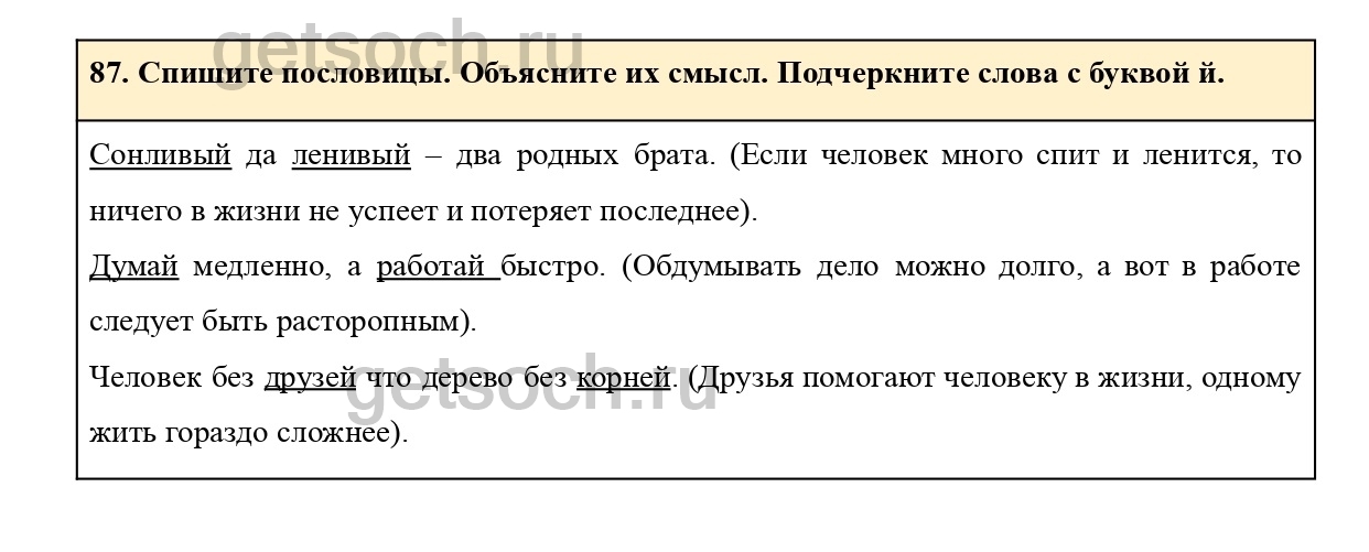 Рассмотрим ответы на Упражнение 87 из учебника по русскому языку для 2 класса Климановой