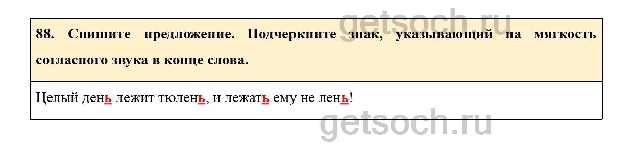 88. Спишите предложение. Подчеркните знак, указывающий на мягкость