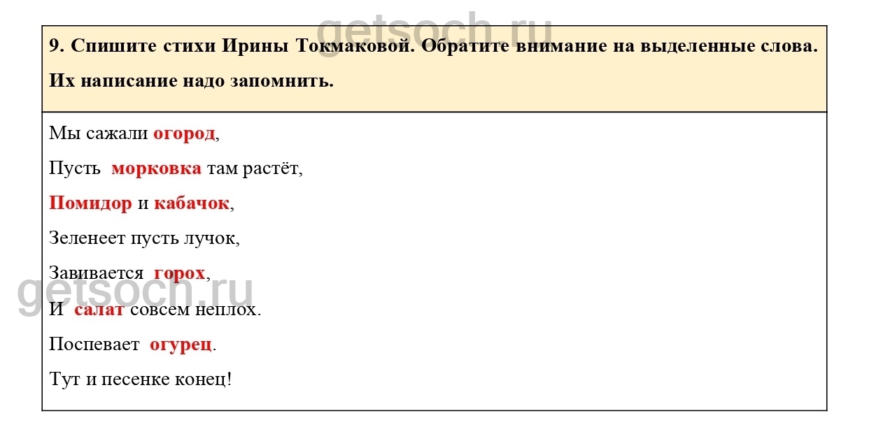 9. Спишите стихи Ирины Токмаковой. Обратите внимание на выделенные слова.