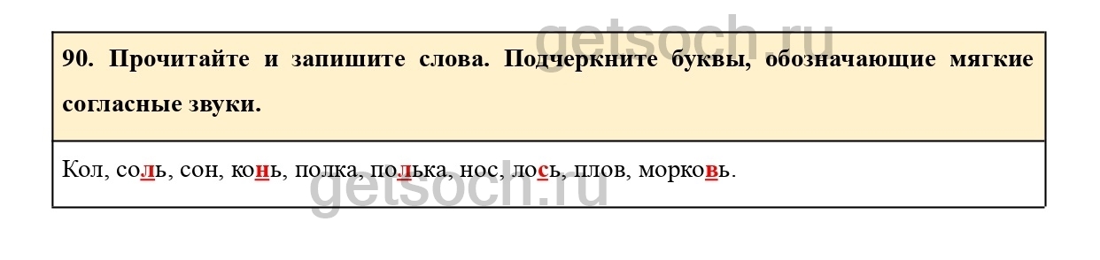 90. Прочитайте и запишите слова. Подчеркните буквы, обозначающие мягкие