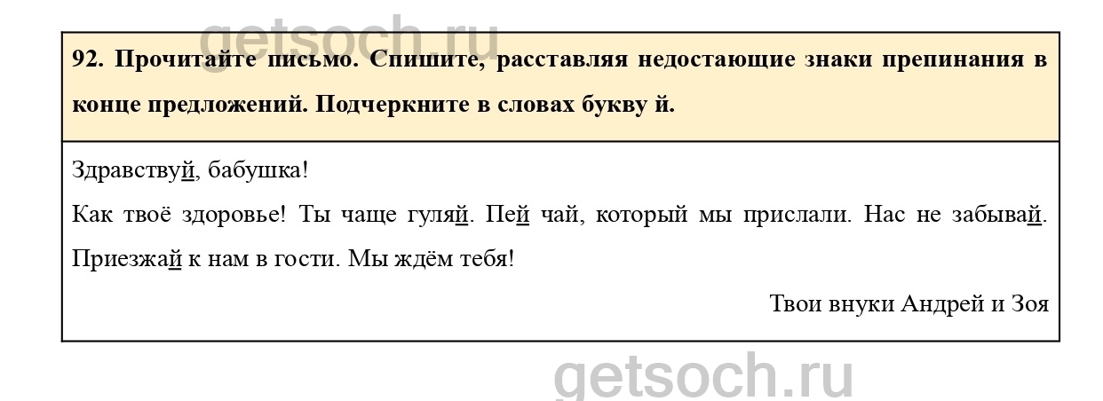 Рассмотрим ответы на Упражнение 92 из учебника по русскому языку для 2 класса Климановой