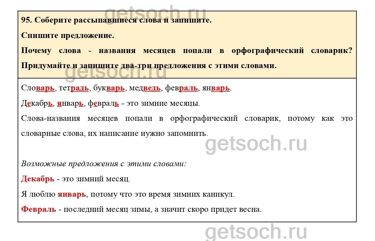 Рассмотрим ответы на Упражнение 95 из учебника по русскому языку для 2 класса Климановой