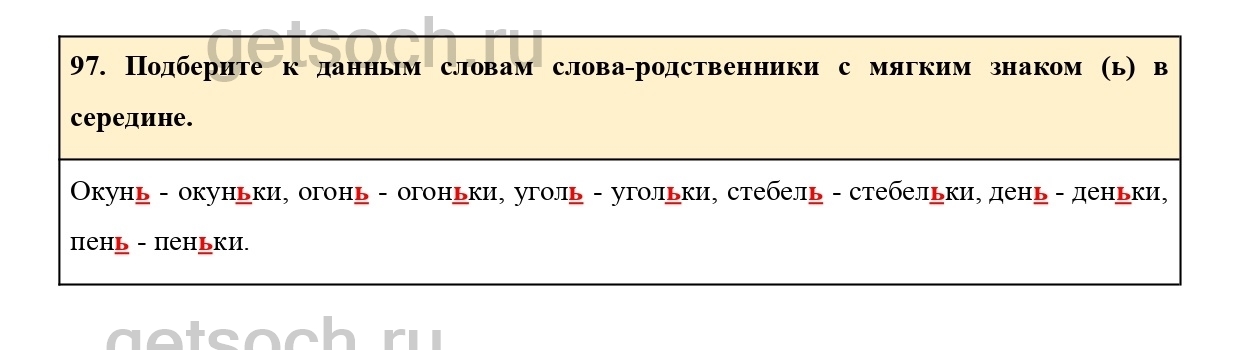 97. Подберите к данным словам слова-родственники с мягким знаком (ь) в