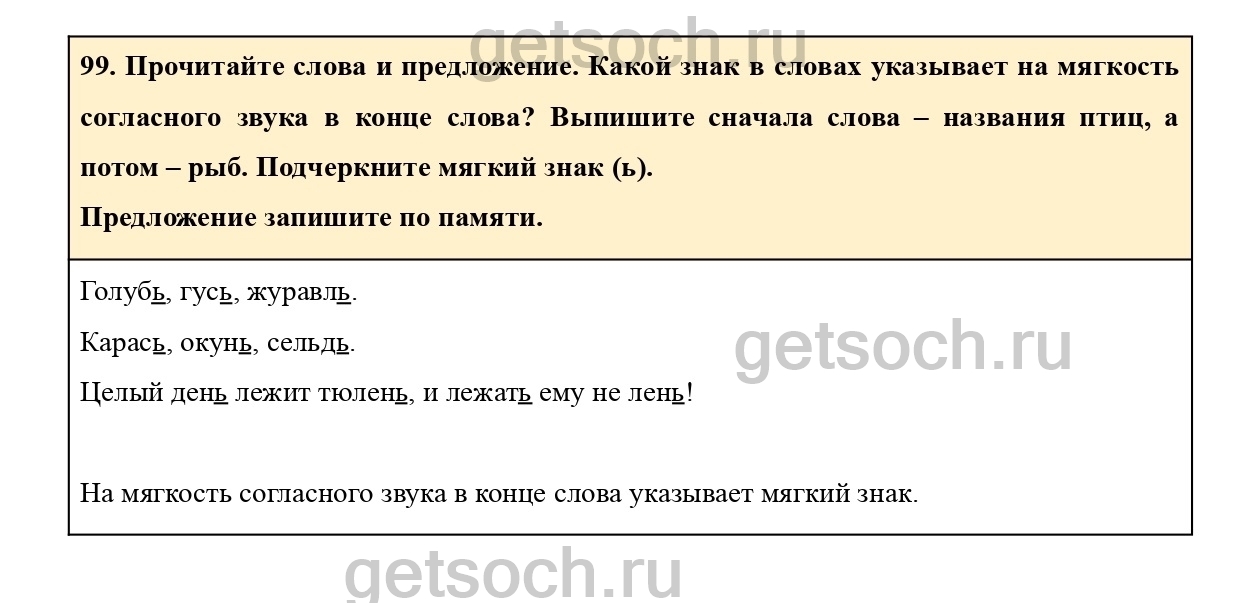 Рассмотрим ответы на Упражнение 99 из учебника по русскому языку для 2 класса Климановой