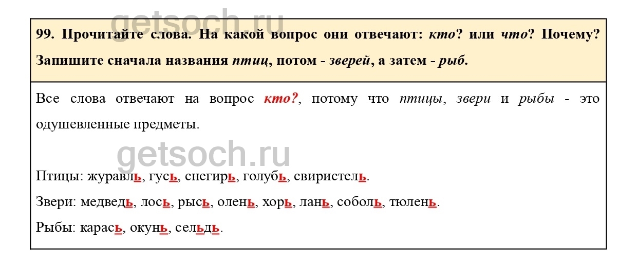 99. Прочитайте слова. На какой вопрос они отвечают: кто? или что? Почему?
