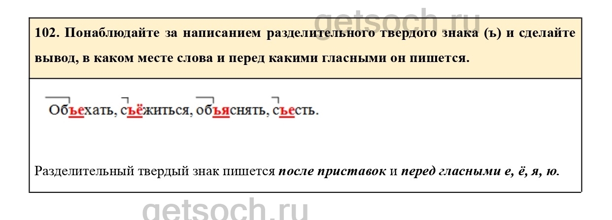 102. Понаблюдайте за написанием разделительного твердого знака (ъ) и сделайте
