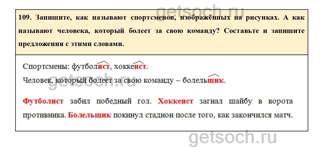 109. Запишите, как называют спортсменов, изображённых на рисунках. А как