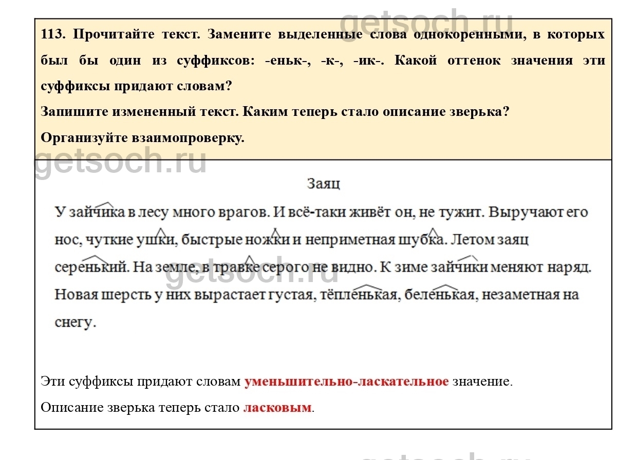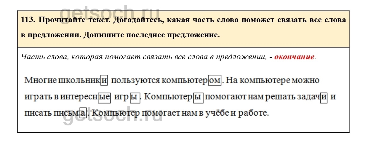 Рассмотрим ответы на Упражнение 113 из учебника по русскому языку для 2 класса Климановой