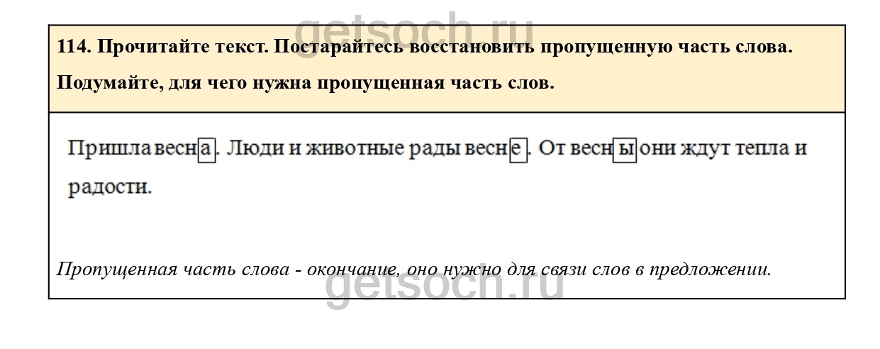 Рассмотрим ответы на Упражнение 114 из учебника по русскому языку для 2 класса Климановой