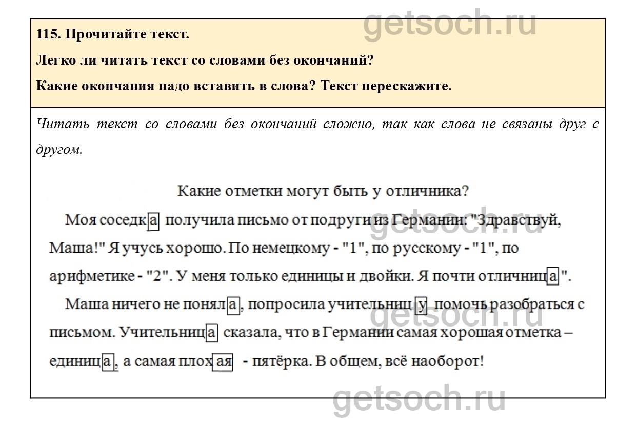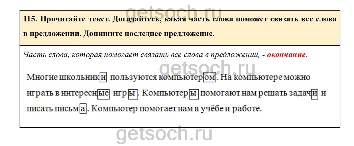 Рассмотрим ответы на Упражнение 115 из учебника по русскому языку для 2 класса Климановой