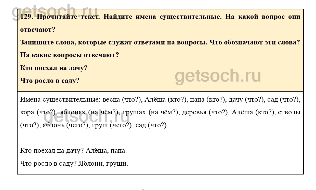 Рассмотрим ответы на Упражнение 129 из учебника по русскому языку для 2 класса Климановой