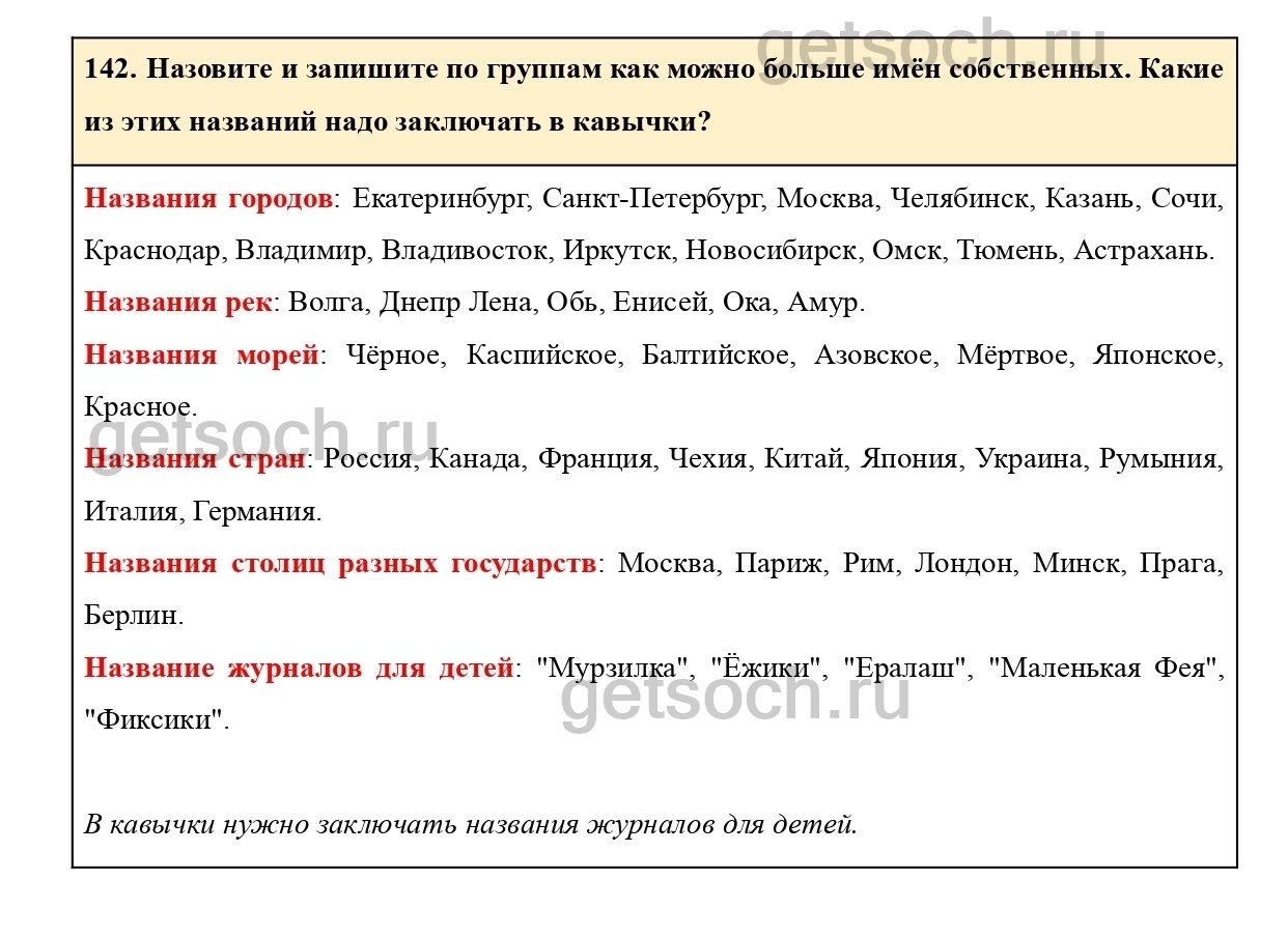 Рассмотрим ответы на Упражнение 142 из учебника по русскому языку для 2 класса Климановой