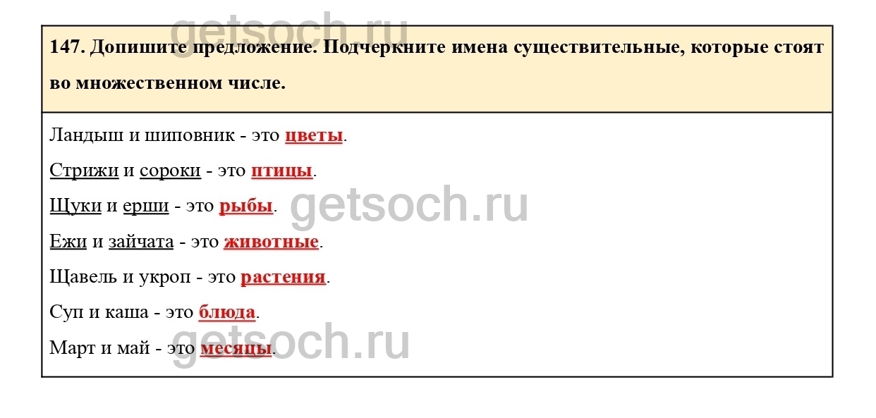 147. Допишите предложение. Подчеркните имена существительные, которые