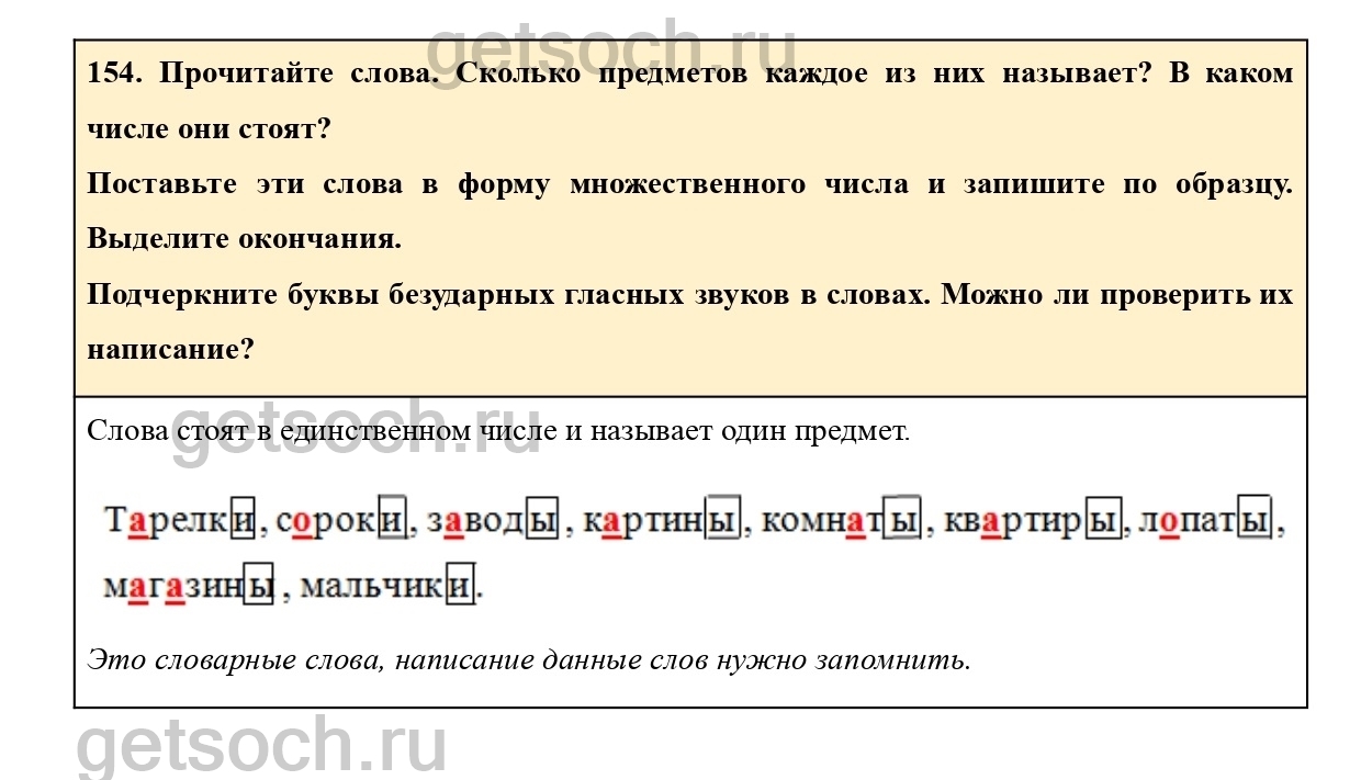 Рассмотрим ответы на Упражнение 154 из учебника по русскому языку для 2 класса Климановой