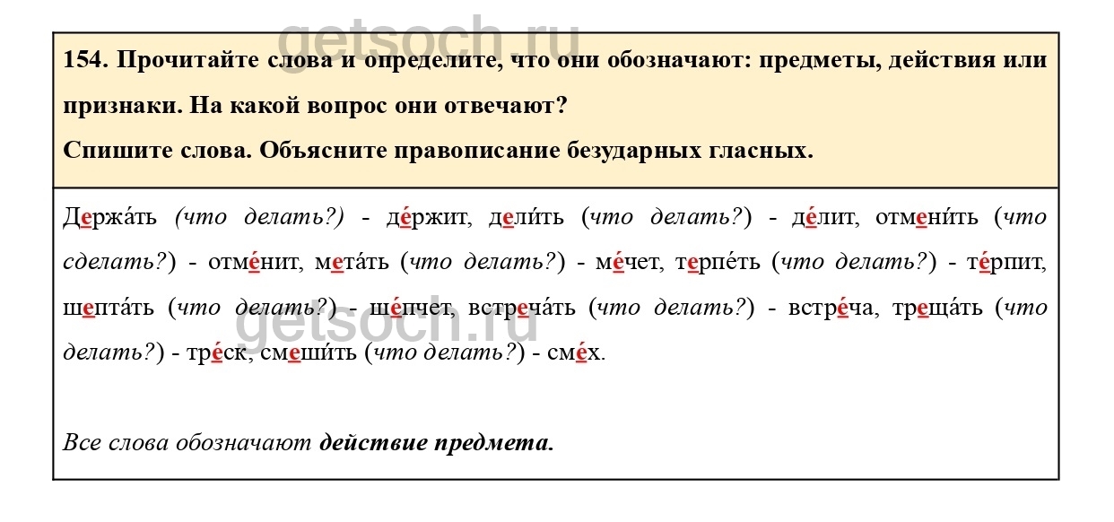 154. Прочитайте слова и определите, что они обозначают: предметы, действия или