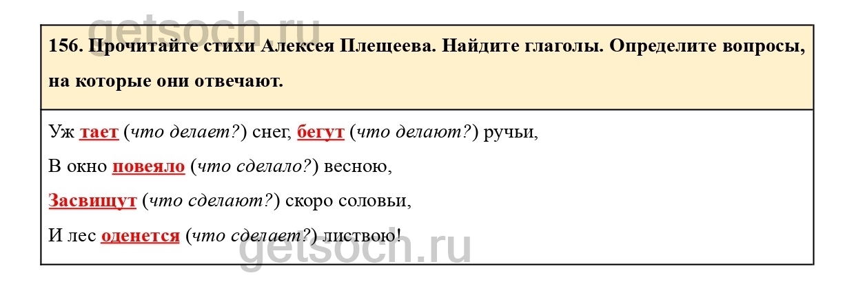 156. Прочитайте стихи Алексея Плещеева. Найдите глаголы. Определите