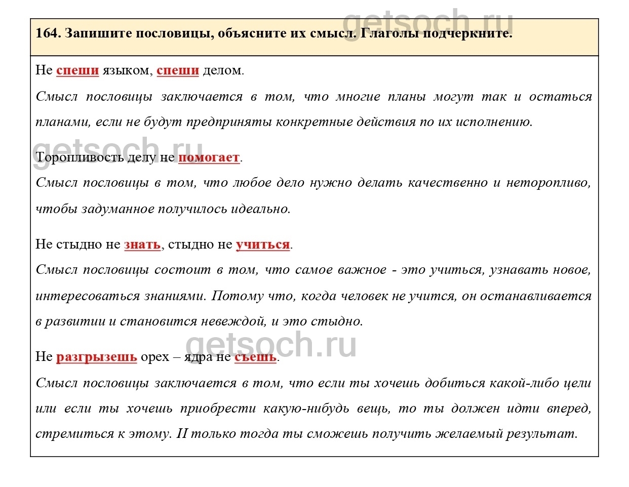 164. Запишите пословицы, объясните их смысл. Глаголы подчеркните.
