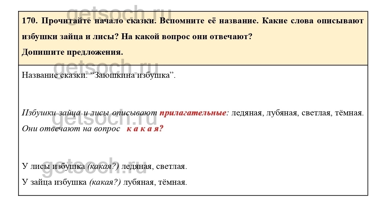 избушки зайца и лисы? На какой вопрос они отвечают?