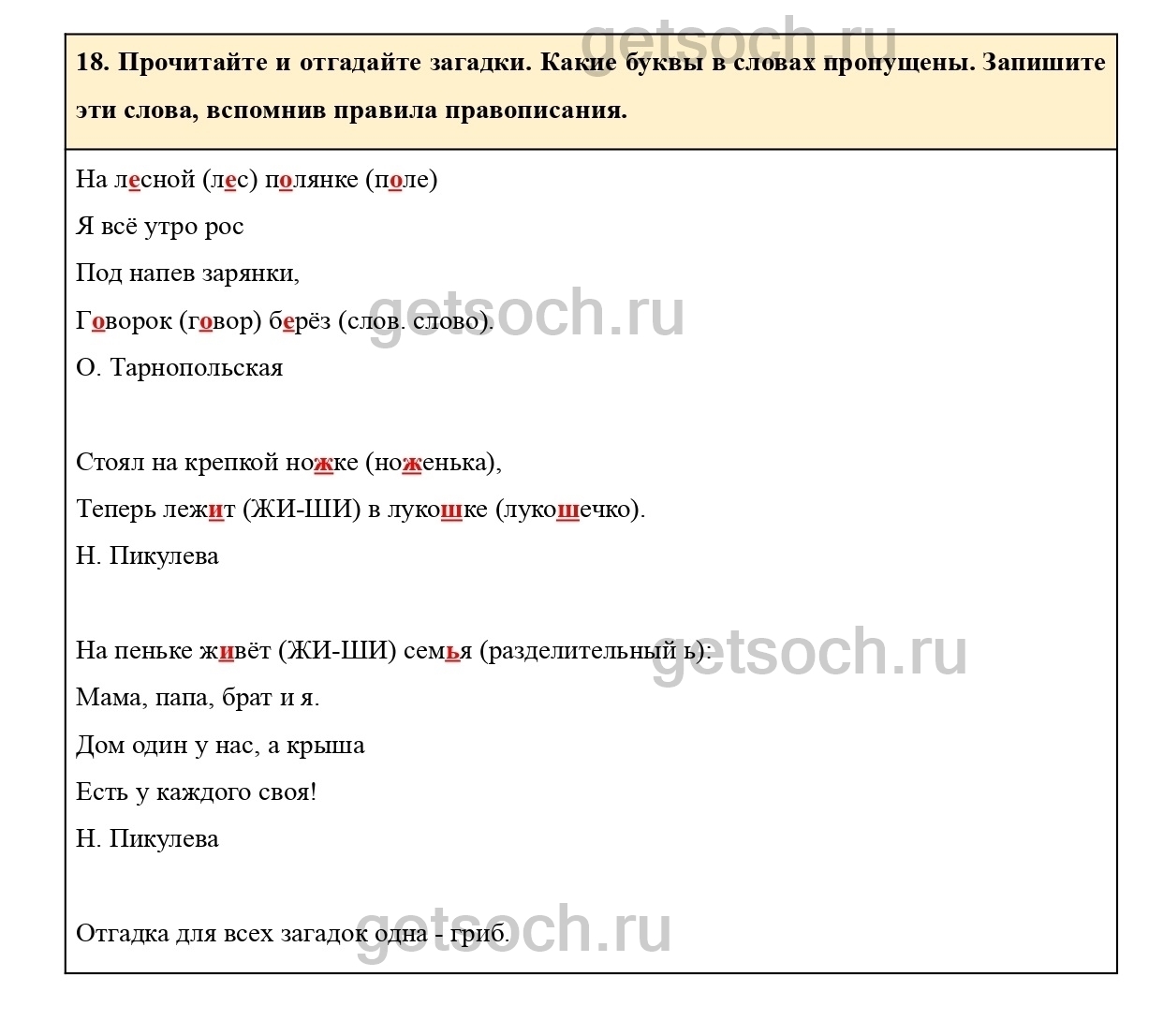 Рассмотрим ответы на Упражнение 18 из учебника по русскому языку для 2 класса Климановой