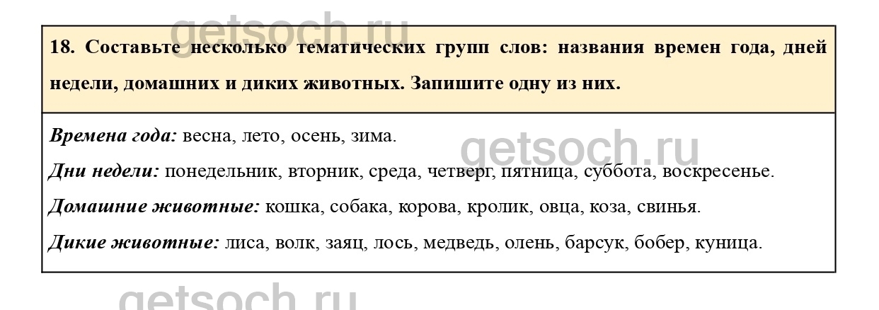 18. Составьте несколько тематических групп слов: названия времен года, дней