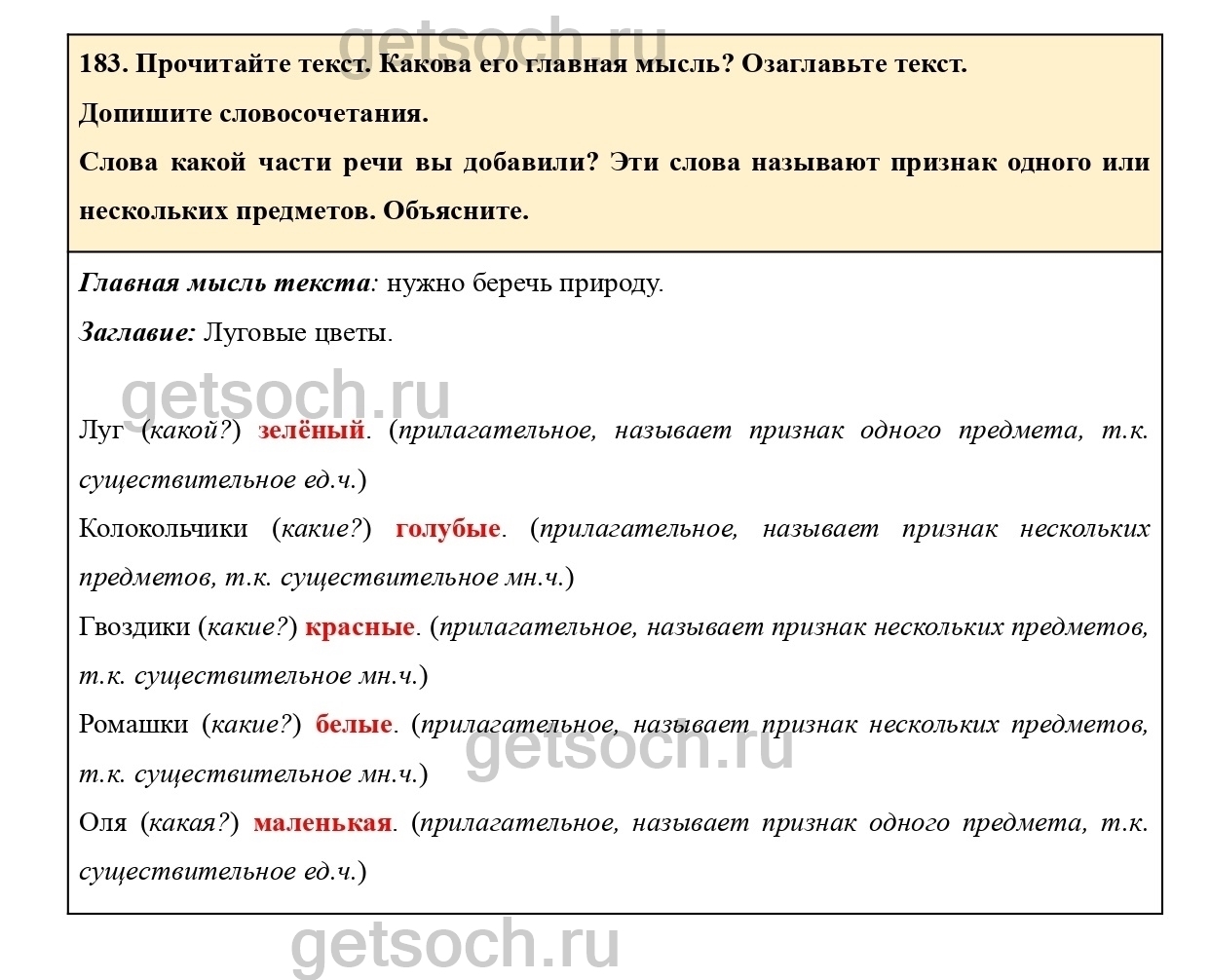 Рассмотрим ответы на Упражнение 183 из учебника по русскому языку для 2 класса Климановой
