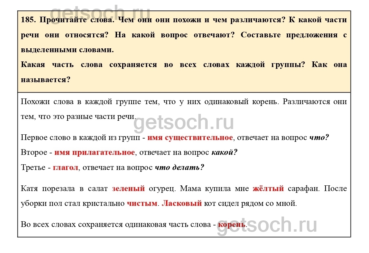 185. Прочитайте слова. Чем они они похожи и чем различаются? К какой части