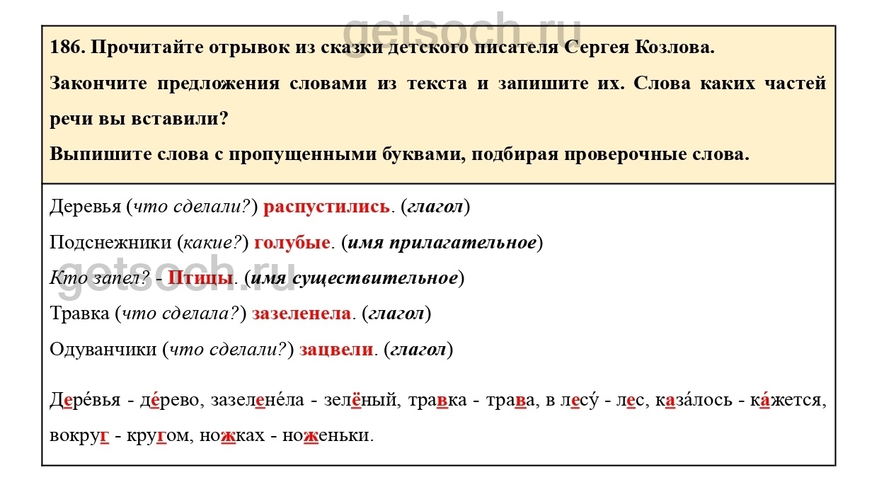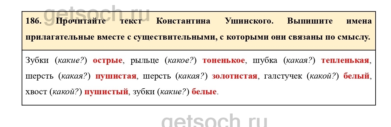 Рассмотрим ответы на Упражнение 186 из учебника по русскому языку для 2 класса Климановой