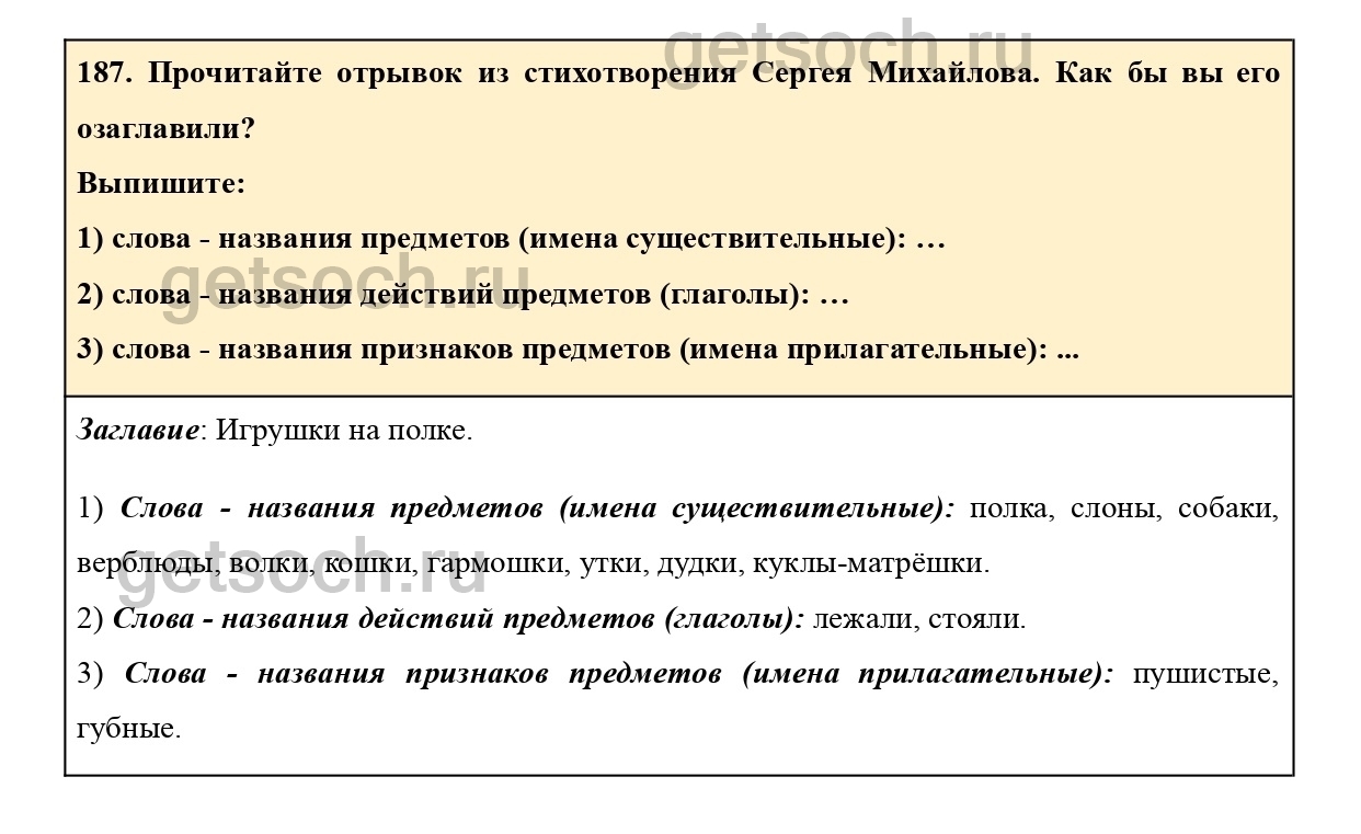 Рассмотрим ответы на Упражнение 187 из учебника по русскому языку для 2 класса Климановой