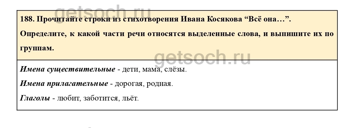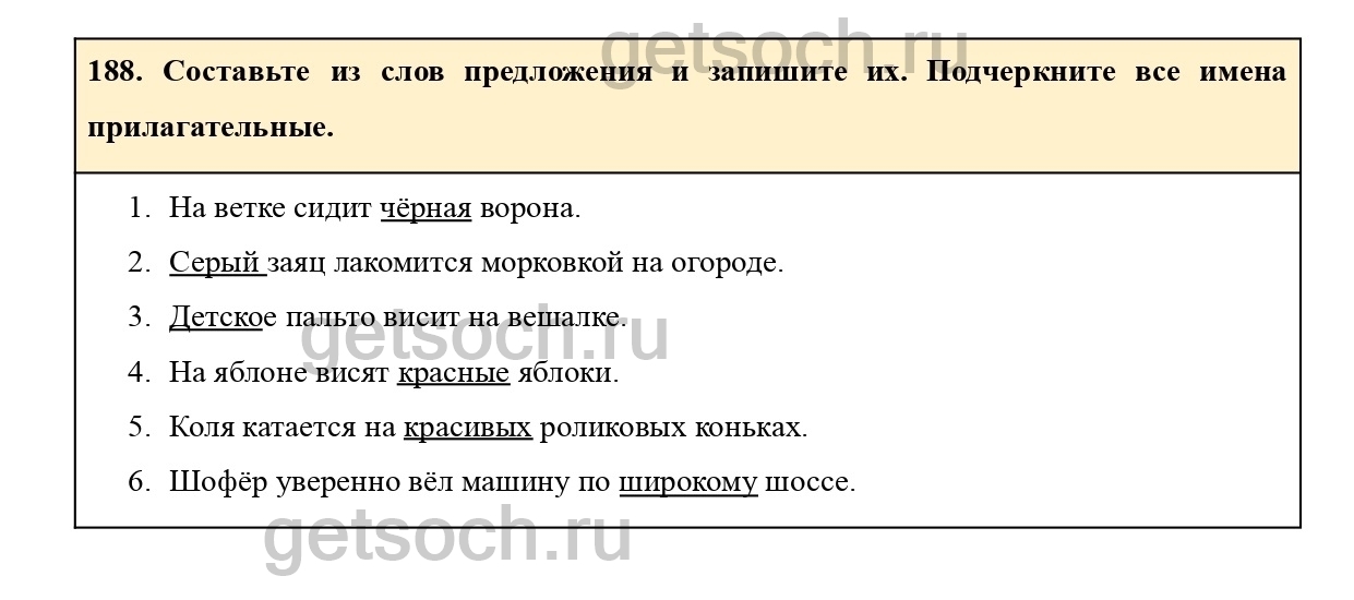 Рассмотрим ответы на Упражнение 188 из учебника по русскому языку для 2 класса Климановой