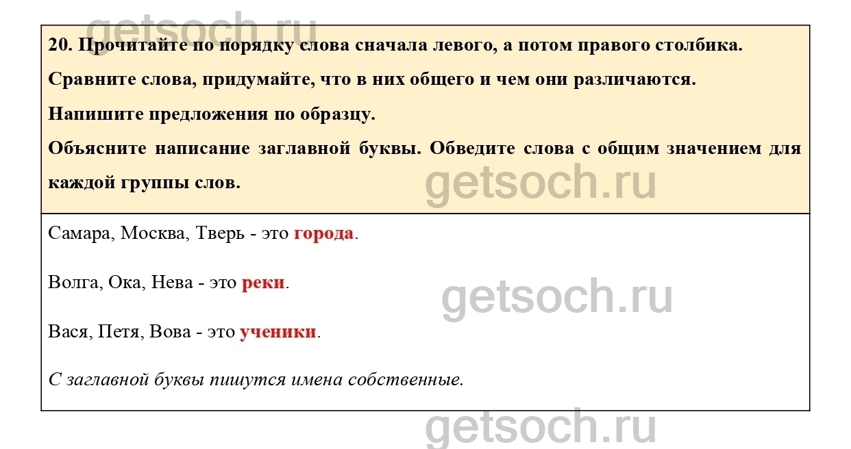 Рассмотрим ответы на Упражнение 20 из учебника по русскому языку для 2 класса Климановой