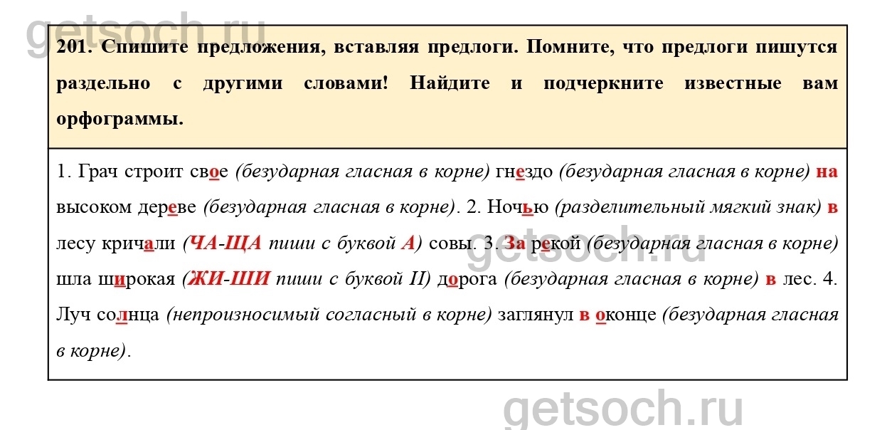 Рассмотрим ответы на Упражнение 201 из учебника по русскому языку для 2 класса Климановой