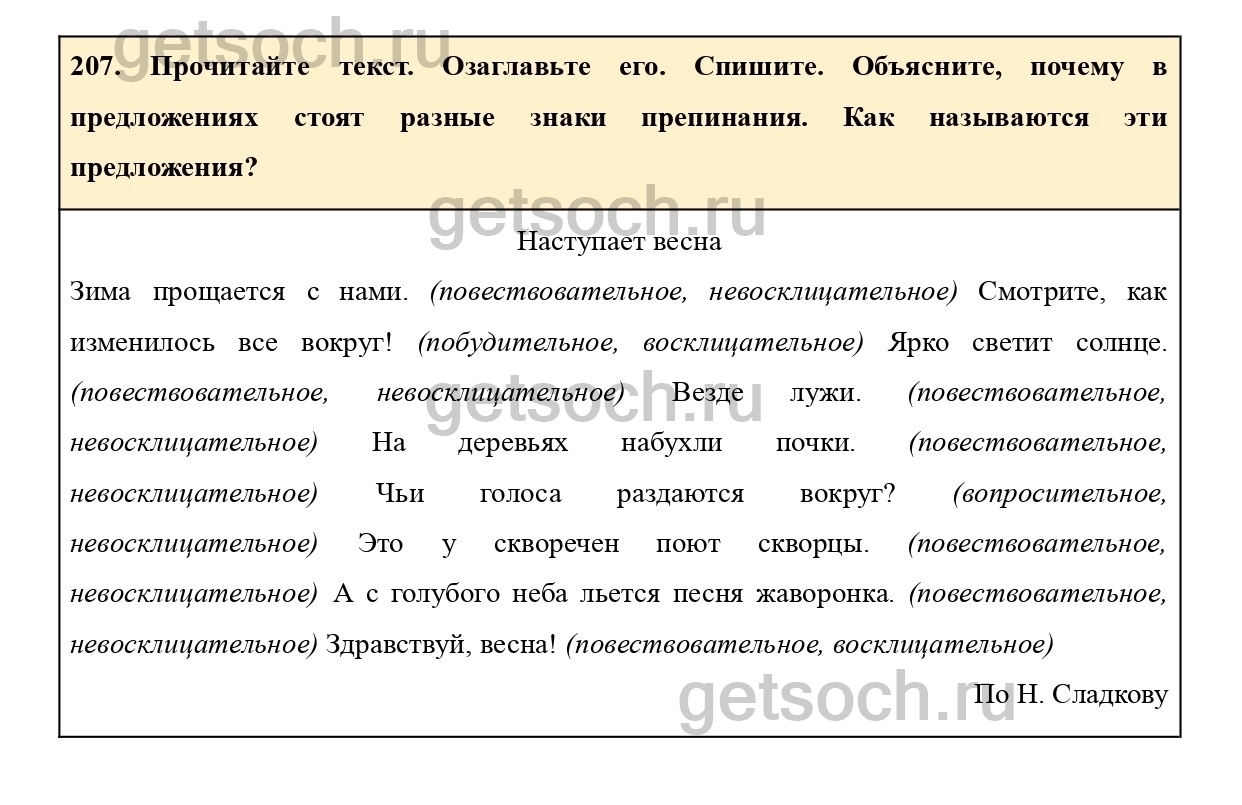 207. Прочитайте текст. Озаглавьте его. Спишите. Объясните, почему в