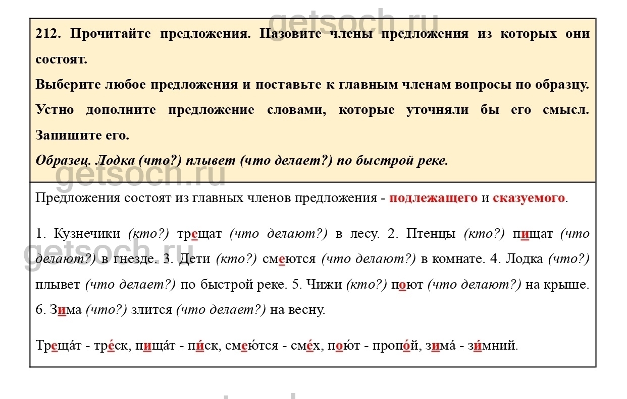 212. Прочитайте предложения. Назовите члены предложения из которых они