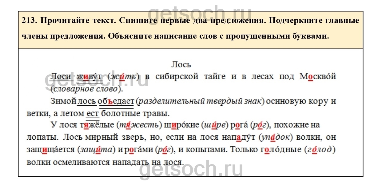 213. Прочитайте текст. Спишите первые два предложения. Подчеркните главные