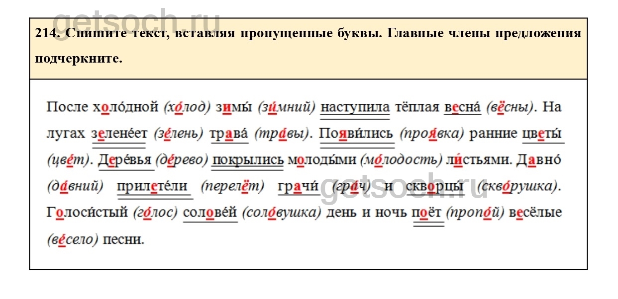 214. Спишите текст, вставляя пропущенные буквы. Главные члены предложения