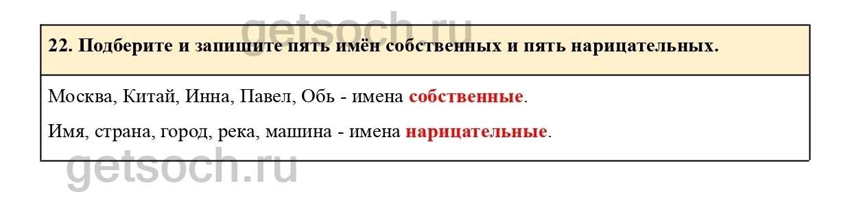 22. Подберите и запишите пять имён собственных и пять нарицательных.