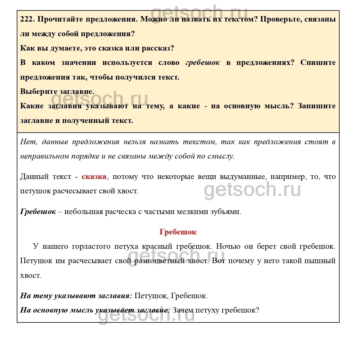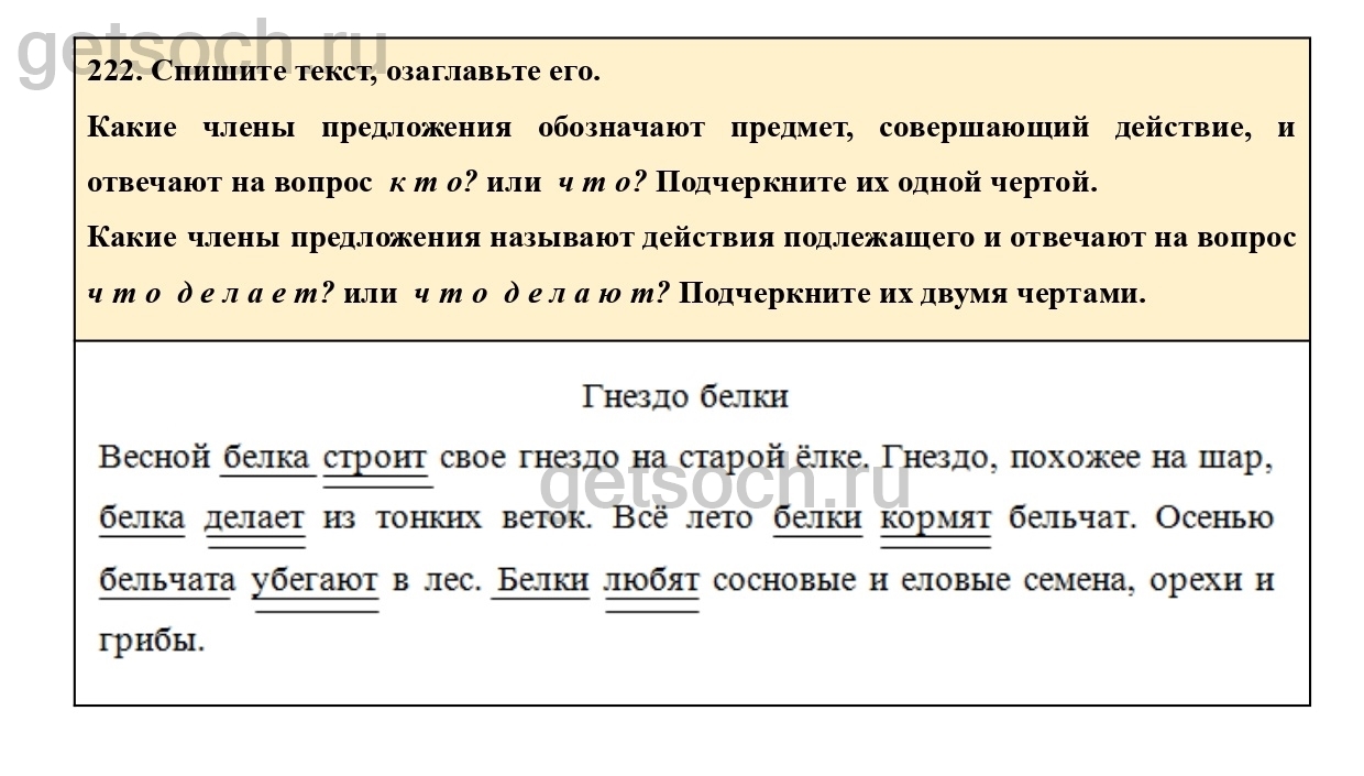 Рассмотрим ответы на Упражнение 222 из учебника по русскому языку для 2 класса Климановой