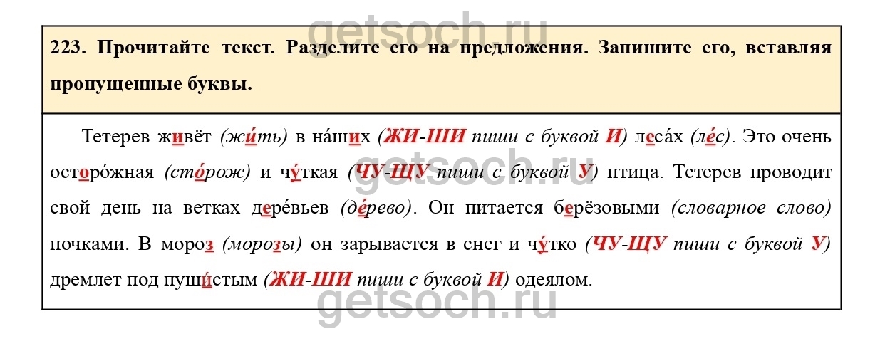 223. Прочитайте текст. Разделите его на предложения. Запишите его, вставляя