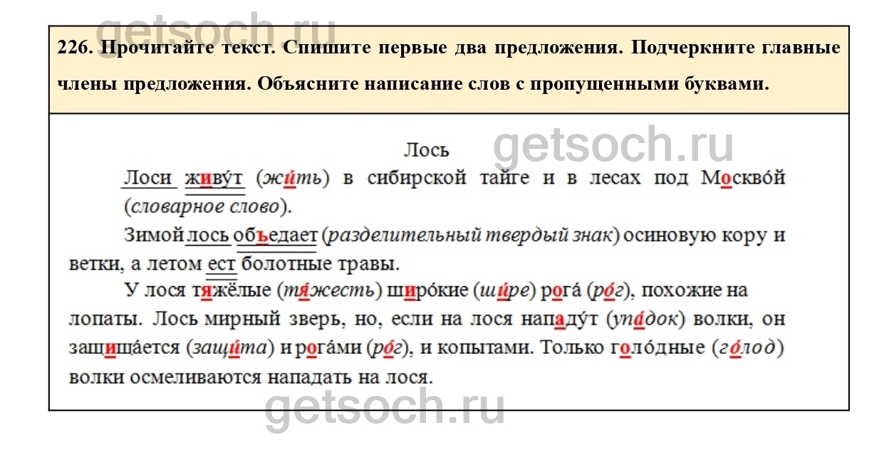 Рассмотрим ответы на Упражнение 226 из учебника по русскому языку для 2 класса Климановой