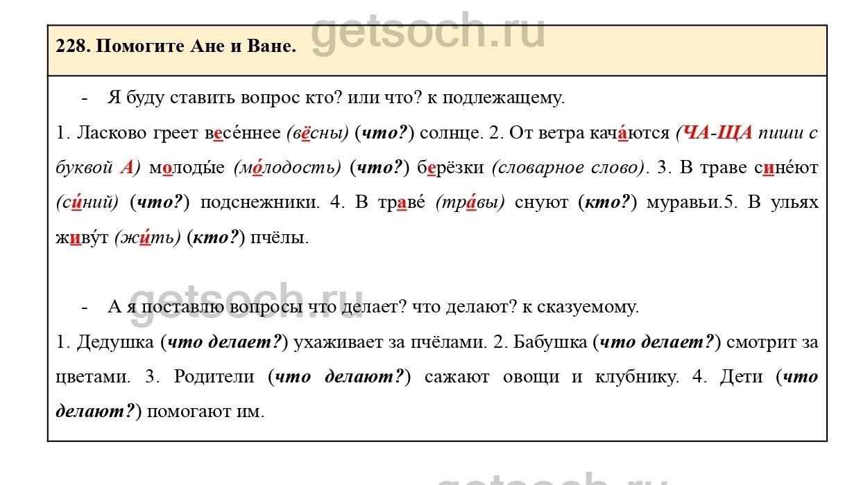 Рассмотрим ответы на Упражнение 228 из учебника по русскому языку для 2 класса Климановой
