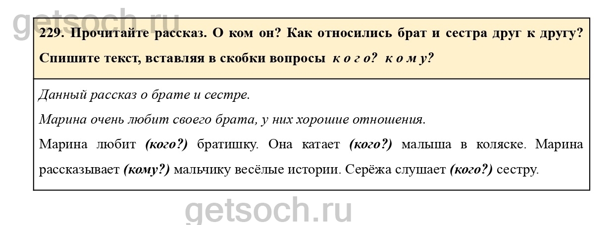 Рассмотрим ответы на Упражнение 229 из учебника по русскому языку для 2 класса Климановой