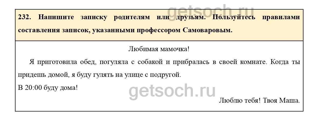 232. Напишите записку родителям или друзьям. Пользуйтесь правилами
