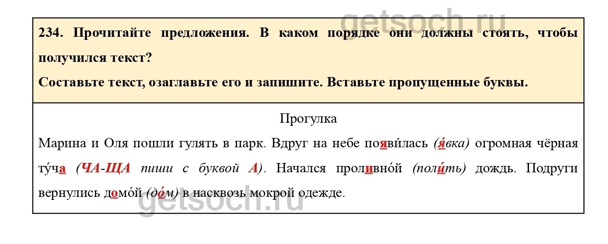 Рассмотрим ответы на Упражнение 234 из учебника по русскому языку для 2 класса Климановой