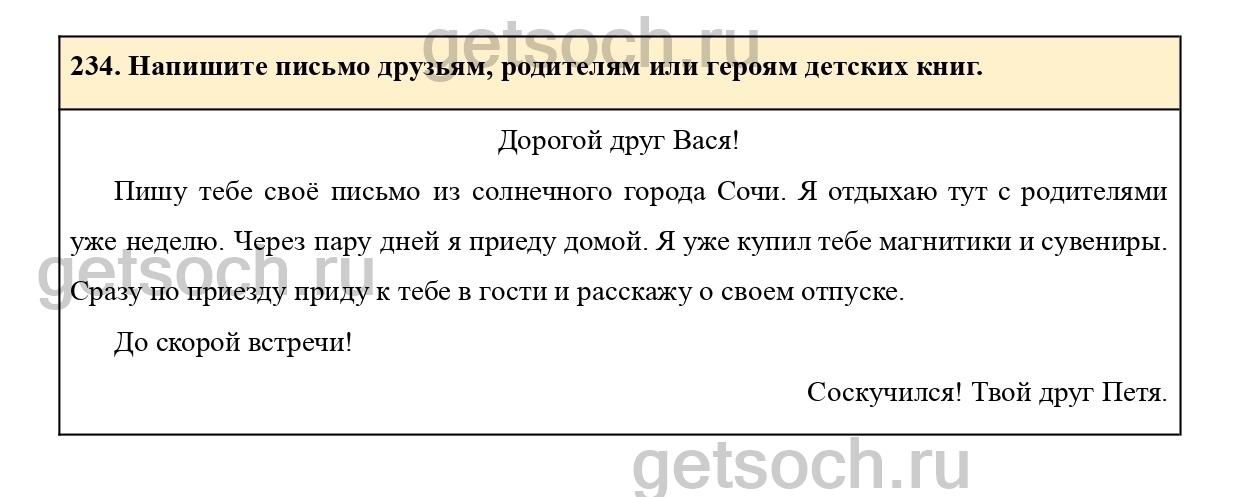 234. Напишите письмо друзьям, родителям или героям детских книг.