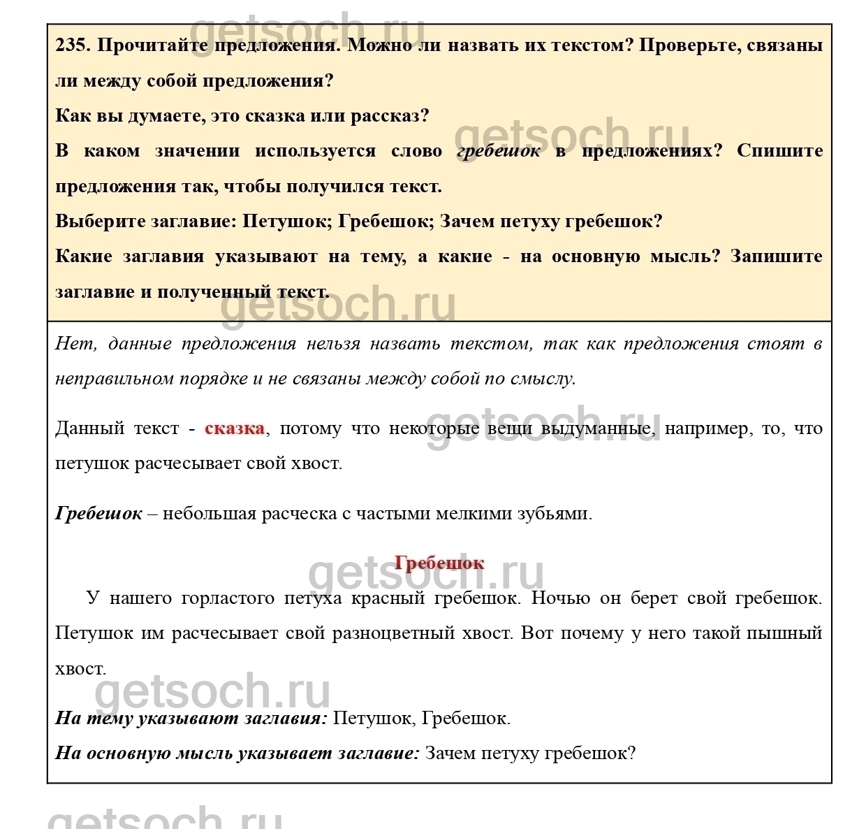 Рассмотрим ответы на Упражнение 235 из учебника по русскому языку для 2 класса Климановой