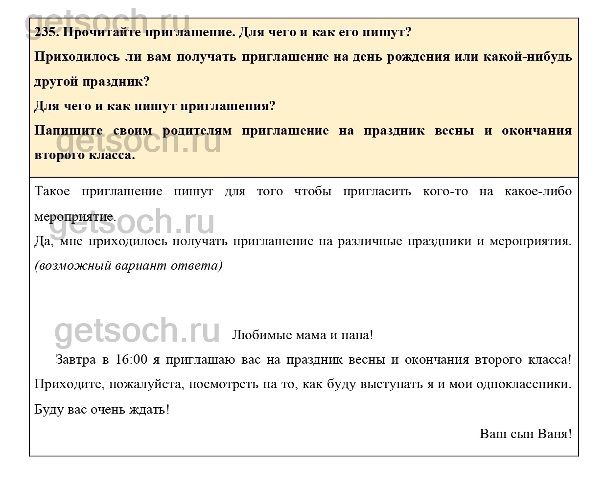 235. Прочитайте приглашение. Для чего и как его пишут?