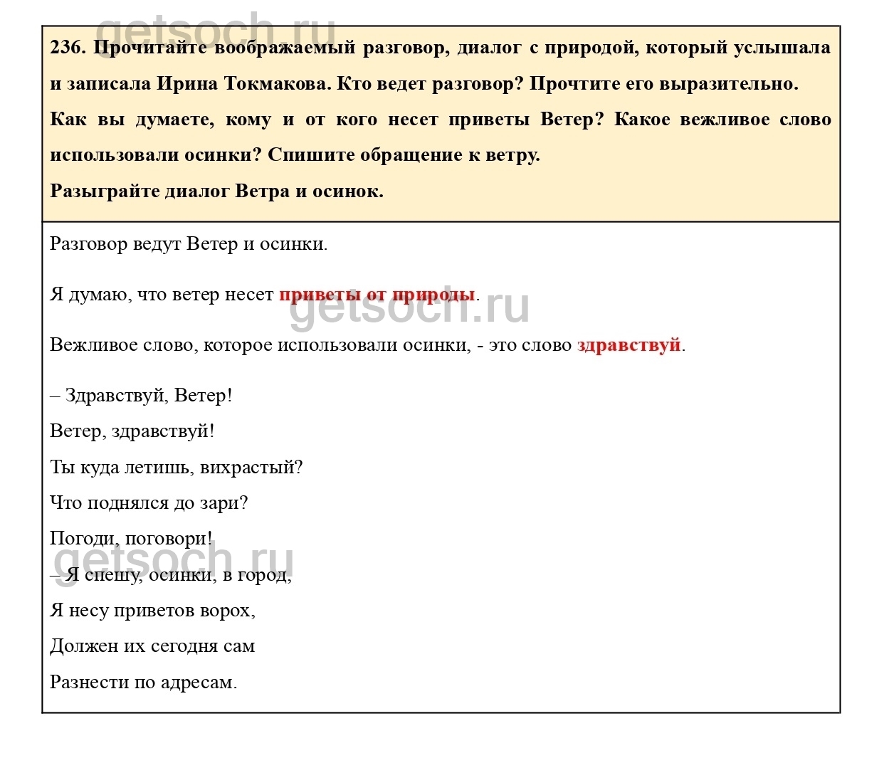 236. Прочитайте воображаемый разговор, диалог с природой, который услышала