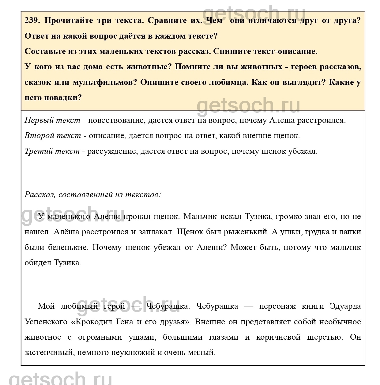 Рассмотрим ответы на Упражнение 239 из учебника по русскому языку для 2 класса Климановой