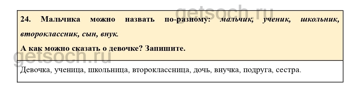24. Мальчика можно назвать по-разному: мальчик, ученик, школьник,